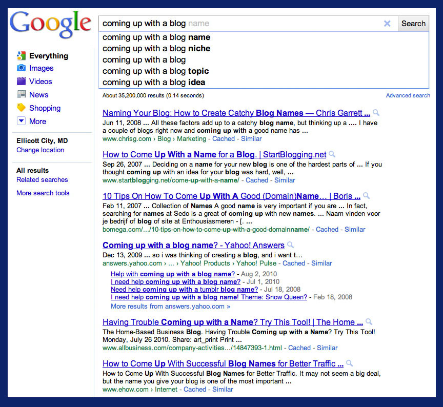 Naming your blog is a serious matter! I googled the phrase “coming up with a blog” and received 35,200,000 responses!