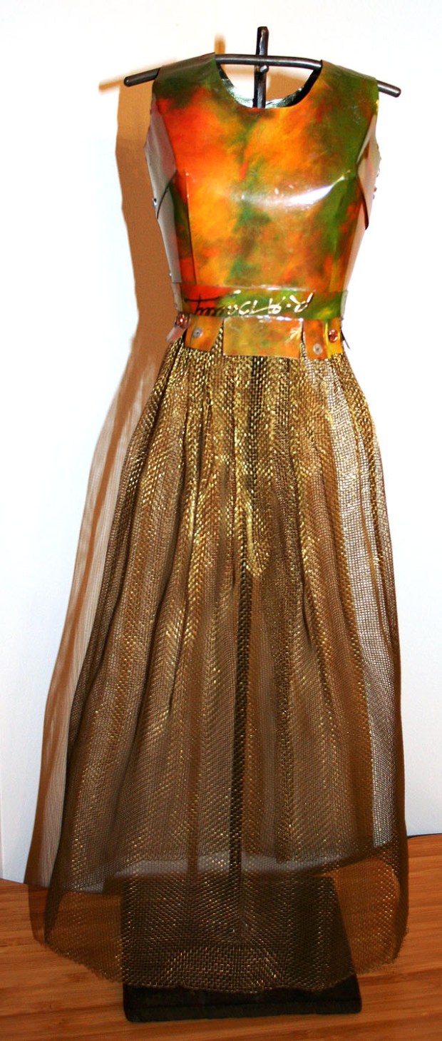 “My inspiration arose from contemplating the dichotomy between the perception of women as fragile, delicate creatures, and the reality that most women are defined by resiliency and steely resolve. I employ a juxtaposition of extremes such as lightness and gravity, suppleness and intransigence, to convey feminine sensibilities.”
